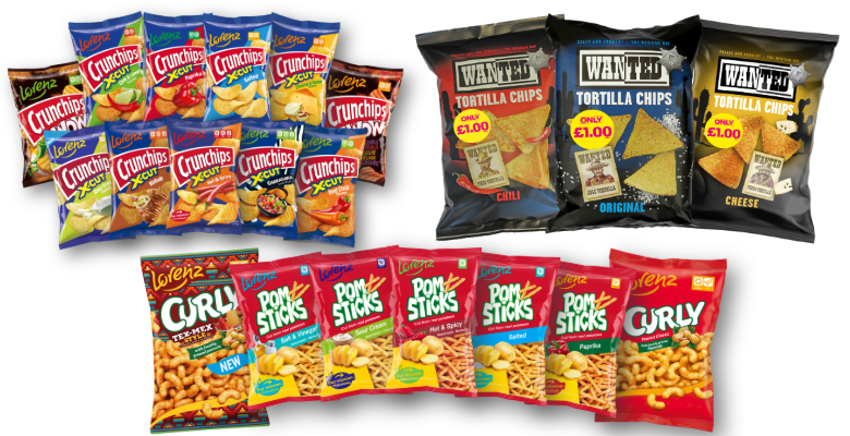 Our best-selling lines are the Lorenz Crunchips X-cut that are available in 75g and 130g bags for flexibility of offer and have very long shelf life.